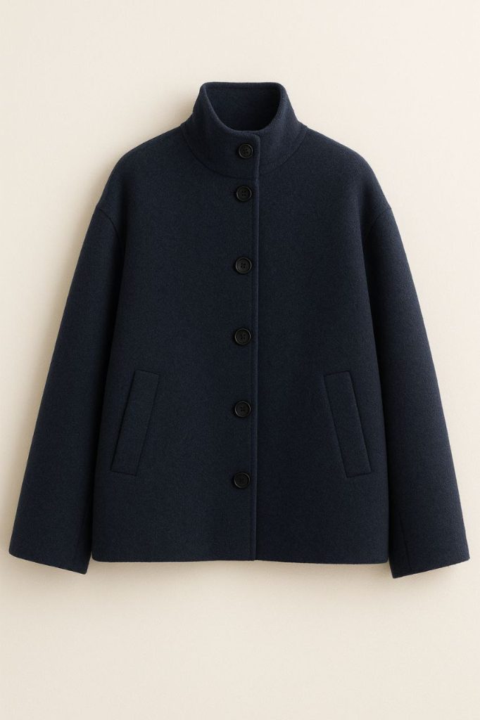 Los abrigos largos ceden protagonismo a los modelos cortos, más prácticos y adaptados al ritmo activo de la ciudad. Max Mara apuesta por versiones de paño doble con cortes clásicos y hombro suave, símbolo de elegancia atemporal. COS impulsa el minimalismo con abrigos cropped de líneas limpias y lana reciclada, mientras que H&M los lleva a un territorio más juvenil a través de siluetas oversize y tejidos sintéticos con forma cocoon.