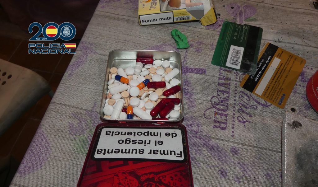 En el operativo se intervinieron además 60 gramos de hachís listos para su distribución, 1.100 euros en metálico y una gran cantidad de medicamentos utilizados para adulterar la droga.