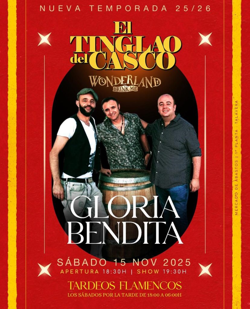 La magia de los tardeos flamencos vuelve a hacer de las suyas en Talavera. Este sábado 15 de noviembre, a partir de las 18:30 horas, Wonderland – El Tinglao del Casco levanta el telón para una nueva temporada llena de compás, energía y alma. Y lo hace por todo lo alto: con Gloria Bendita como grupo invitado para inaugurar una serie de noches que prometen quedarse en la memoria.