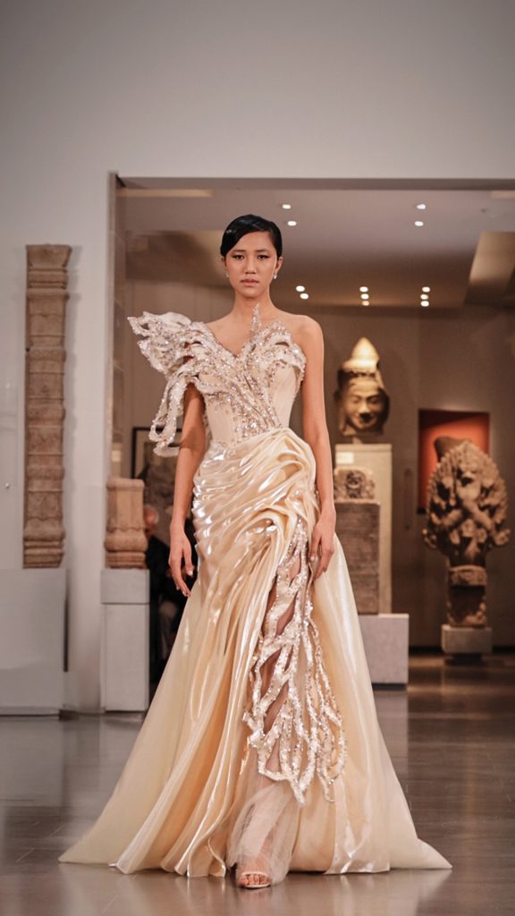 La colección fue presentada en el Musée national des arts asiatiques – Guimet, una de las instituciones culturales más significativas de París. El lugar aportó una profunda dimensión simbólica a la puesta en escena, donde la pasarela evolucionó de la oscuridad hacia la luz, reflejando el viaje emocional y psicológico del concepto.