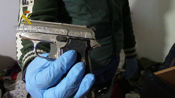 En el registro realizado en la parte utilizada como vivienda, los agentes intervinieron un arma corta real que estaba oculta en el dormitorio, junto con otras 4 armas de fuego simuladas, un taser, varias armas blancas, 3 kilogramos de aceite de hachís, 982 gramos de cogollos de marihuana y 364 gramos de polen de esta planta.