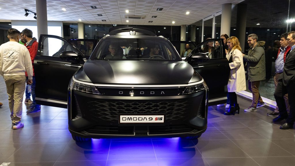 A las 21:15 h se produjo el gran anuncio de la noche: la presentación del impresionante OMODA 9 SHS Black Matte. Un modelo elegante, rompedor y con una presencia que dejó sin palabras a los asistentes. Este vehículo representa una nueva era dentro del catálogo de la marca. Con una apuesta clara por el diseño de vanguardia y la sofisticación premium.