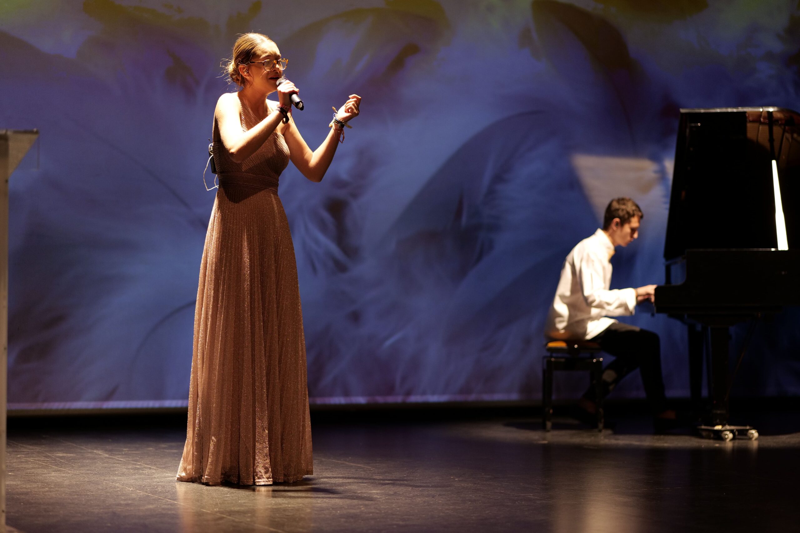 Cristina Cebrián, la cantante más joven de esta nueva puesta de largo (15 años) y participante de la última edición de LA VOZ KIDS, consiguió emocionar a los presentes al compás de las notas del piano que interpretó su hermano, Antonio Cebrián.